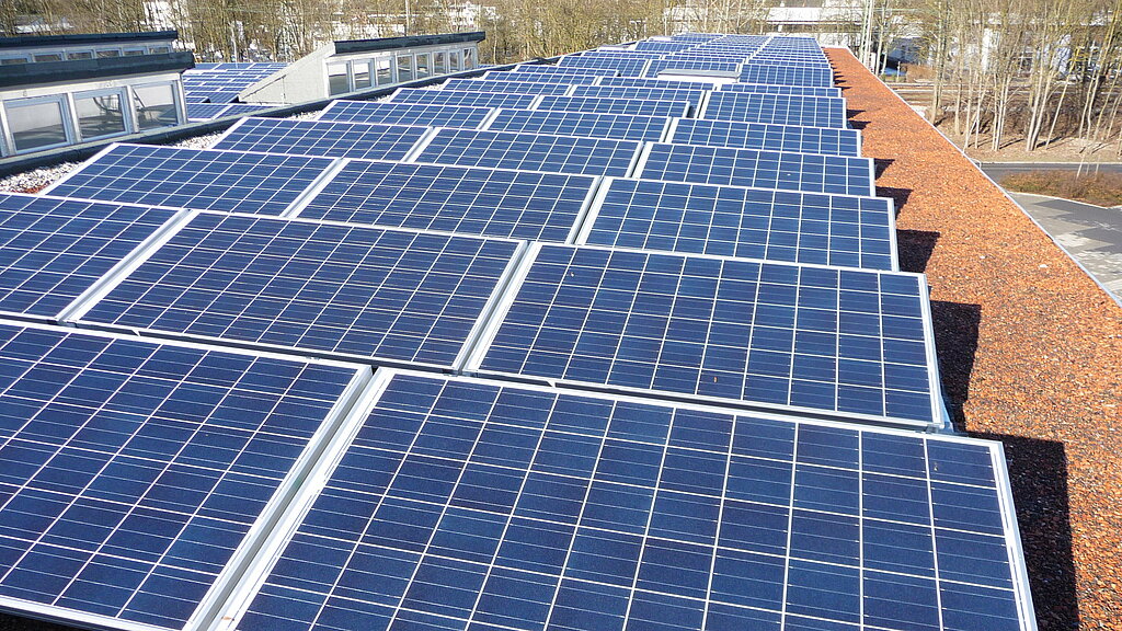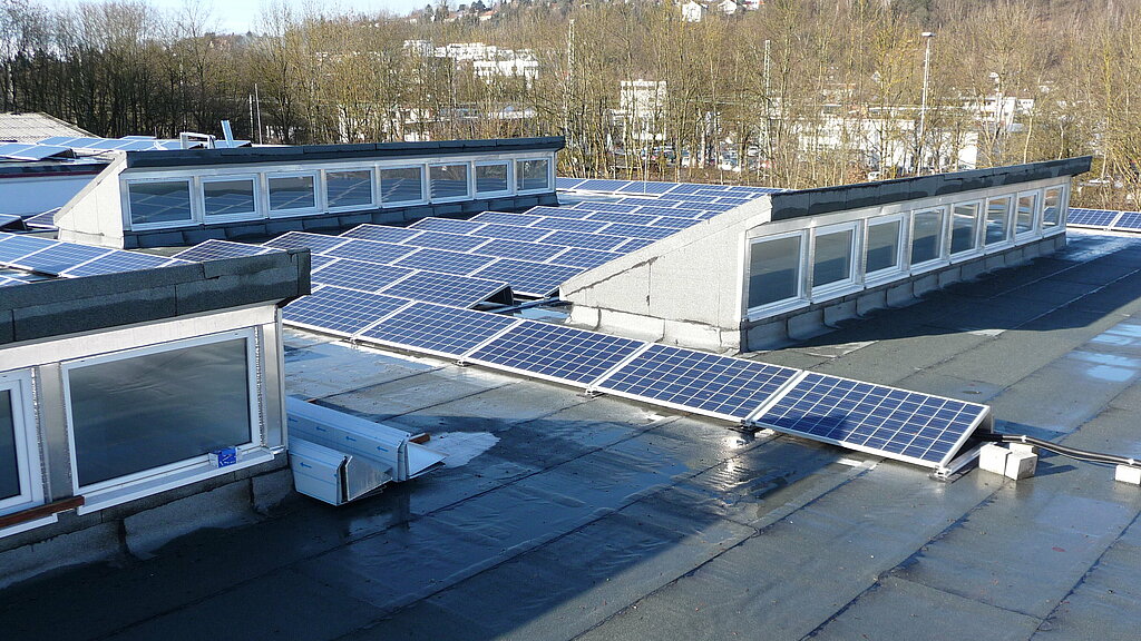 Um einen möglichst hohen Eigenverbrauch des Solarstroms zu erreichen, wurde vom Bürogebäude eine Stromleitung zur Veranstaltungshalle gelegt, auf der sich die Photovoltaikanlage befindet. Der Solarstrom kann so auch in den Büros verbraucht werden, wodurch der Eigenverbrauchsanteil etwa 40% betragen wird.